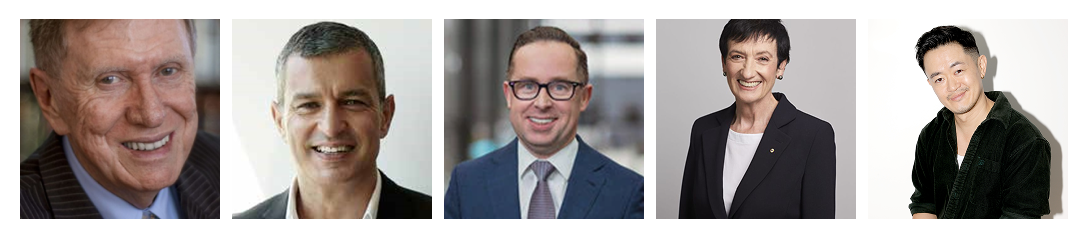 L to R: Honorable Justice Michael Kirby AC CMG; Paul Zahra; Alan Joyce AC, Jennifer Westacott AC; Benjamin Law